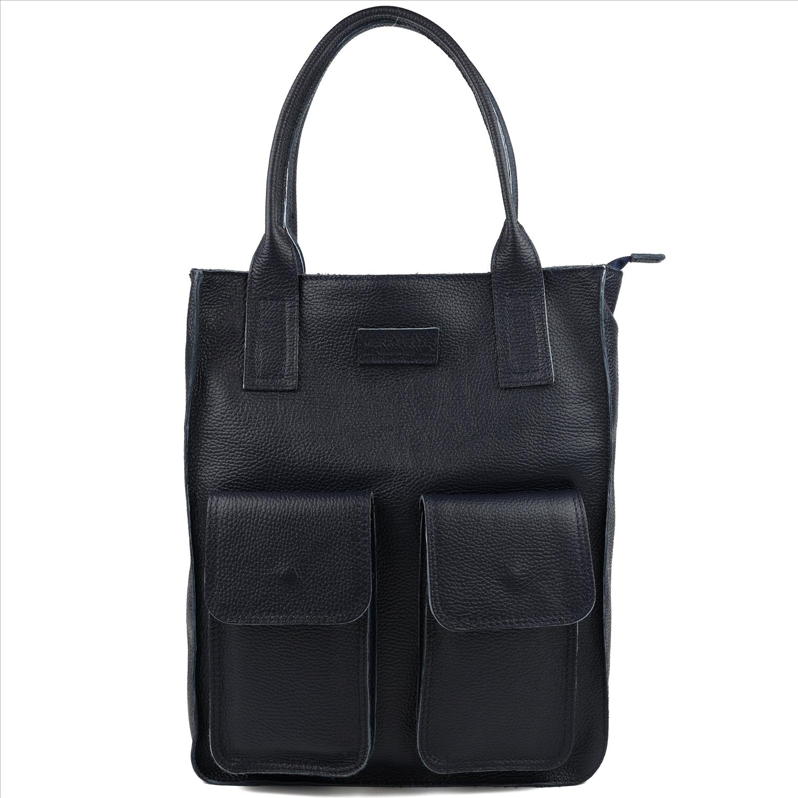 Leder-Shopper mit zwei Vordertaschen. Gefertigt in Italien.