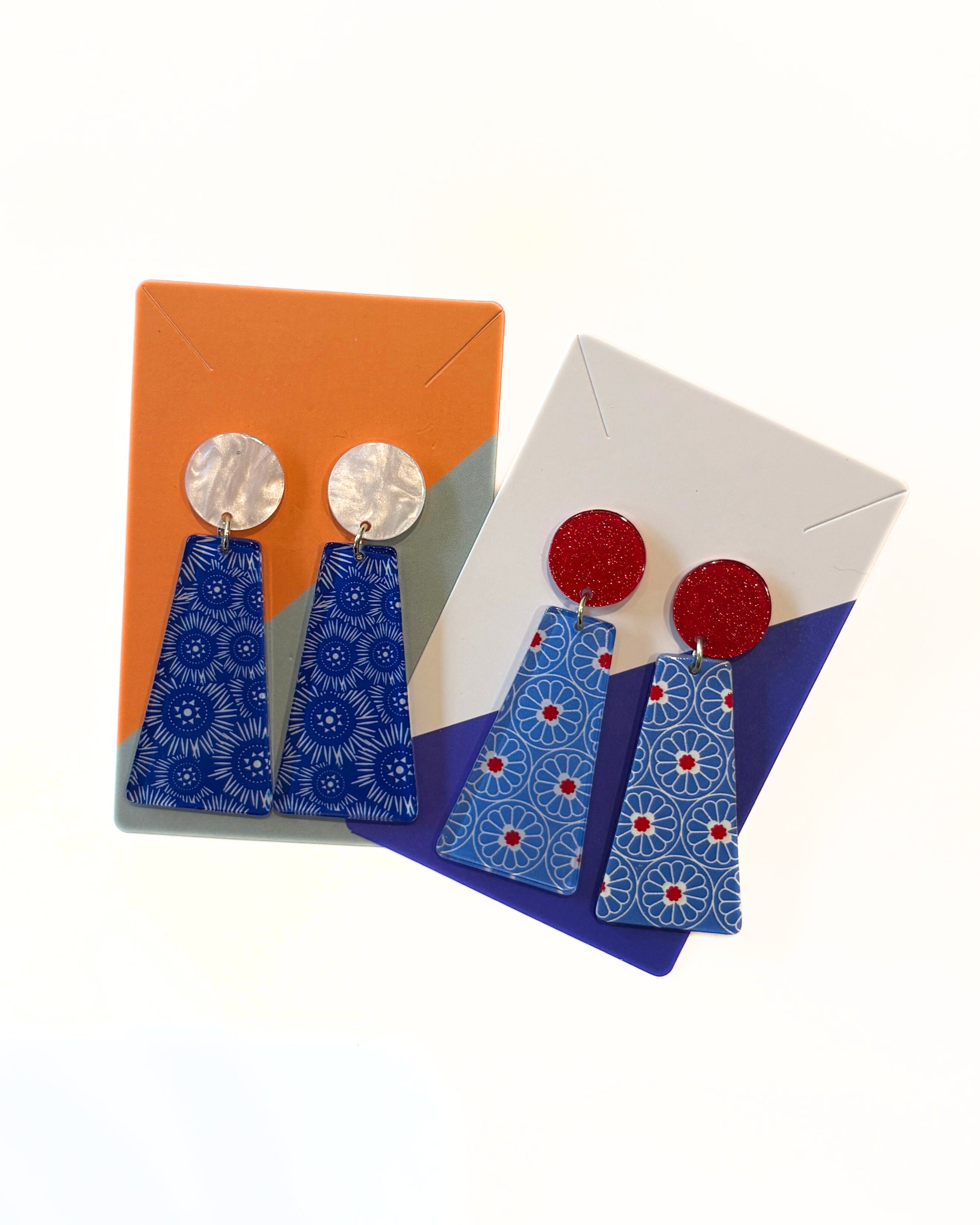 Ohrringe mit Acrylanhängern in rot/blau oder weiß/blau